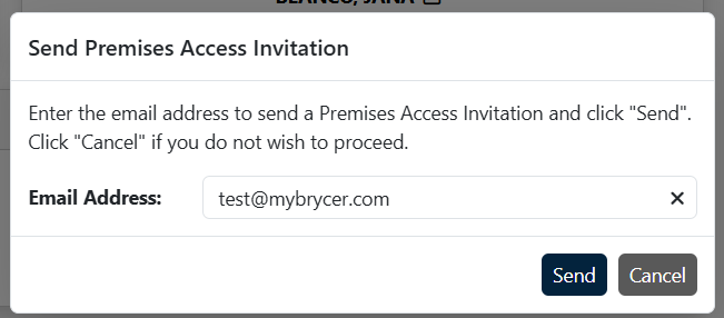 A box will pop up, prompting you to enter the email address of the person to whom you are giving premises user access. Enter their email address and click “Send.”