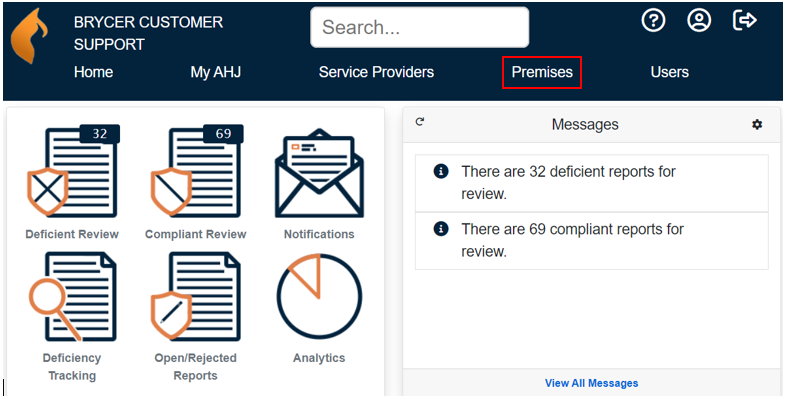 From your home screen, click on the “Premises” button in the top blue bar.